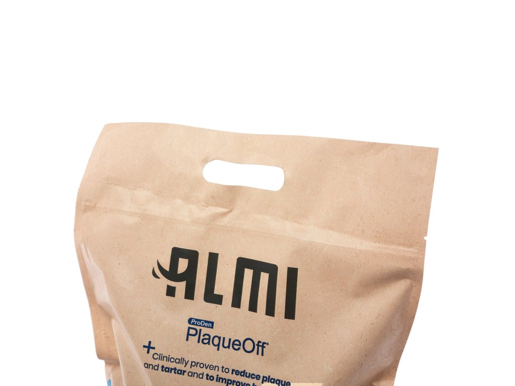 Granule ALMI jsou plné kvalitních surovin, které štěně potřebuje pro zdravý růst a vývoj. Obsahují čerstvou rybu, konkrétně sledě a hovězí maso, které jsou zdrojem bílkovin potřebných pro pevné a silné svaly. Dále je v krmivu hrách, jablka, řepná vláknina a rýže pro lepší stravitelnost. V našem krmivu nenajdete umělá barviva a pro zachování čerstvosti a kvality je přirozeně konzervováno rozmarýnovým extraktem. Granule ALMI jsou obohacené o PlaqueOff™, u kterého je klinicky prokázáno, že snižuje zubní plak, zubní kámen a zlepšuje špatný dech.