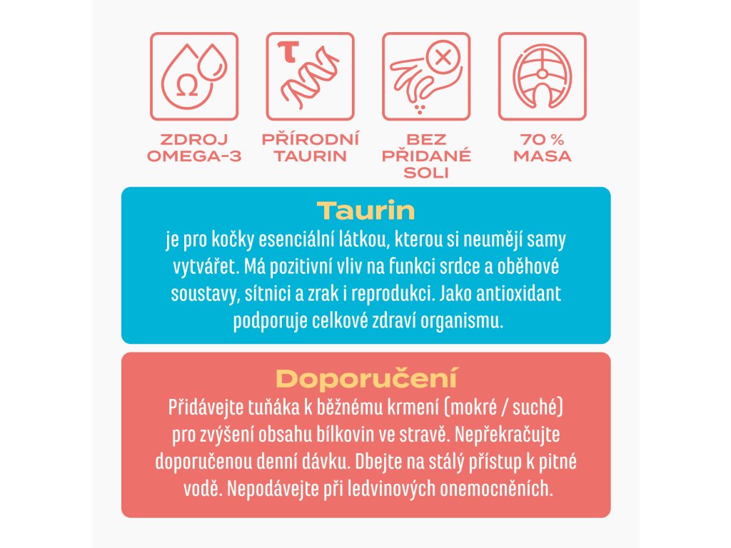 Ve spolupráci s předním portugalským zpracovatelem ryb vyrábíme speciálně pro naše a Vaše mazlíky TUŇÁKA S MINIMÁLNÍM OBSAHEM SOLI. Aby bylo množství soli omezeno na minimum, jsou během výrobního procesu využity jen části ryb, které přirozeně obsahují soli nejméně.