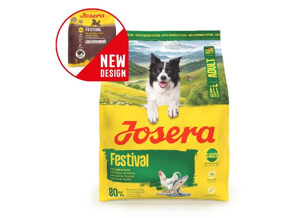 Obzvlášť aromatické a chutné, křupavé granule od Josera Festival s práškovou omáčkou nabízejí Vašemu náročnému pejskovi jedinečný chuťový zážitek jak v suché, tak i mokré formě. Vyvážená receptura s lososem je bohatá na energii pro aktivní a sportovně založené psy. Různé a snadno absorbovatelné výživové látky se postarají o pohodu a aktivitu. Josera Festival se vyznačuje vyváženým obsahem vápníku, fosforu, vitamínu C, manganu a mědi. Tento komplex vitálních látek se postará o silnou stavbu kostí a zdravé klouby. Cenné mastné kyseliny, zinek a měď podporující zdraví kůže a lesk srsti. Neobsahuje žádná umělá barviva, aromata, konzervační látky, ani geneticky upravované suroviny. Neobsahuje přísady, které mohou způsobovat alergie, jako jsou pšenice, cukr, sója nebo mléčné produkty. Kvalita všech přísad je neustále kontrolována. Kvůli zachování cenných vlastností, jsou granule baleny do praktického, znovuuzavíratelného sáčku AromaSafe.