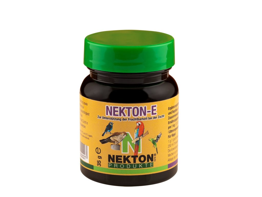 NEKTON-E v podobě rozpustného prášku poskytuje chovatelům ideální formu pro dávkování. Stačí jej přidávat do měkkého krmiva nebo vody. Po přidání do studené vody může NEKTON-E tvořit mléčnou, kalnou substanci. Toto je naprosto v pořádku, stejně tak jako usazeniny na okrajích nádoby. Jedná se pouze o substanci, nesoucí přídavné látky. Vitaminy jsou kompletně rozpustné. Ideální je kombinace s NEKTON S.Používejte NEKTON E cca 3 týdny před začátkem chovné sezóny a přestaňte jej ptákům nabízet, jakmile se objeví první snůšky.