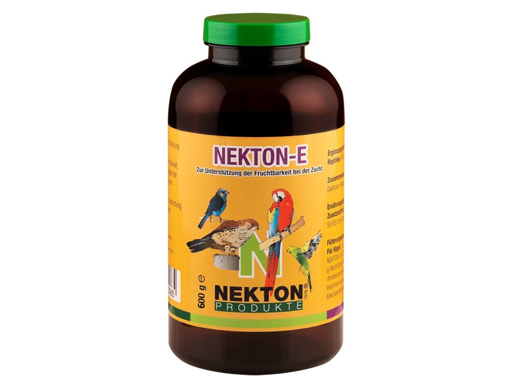 Nekton E je vitamínový doplněk potravy pro ptáky a savce, který obsahuje vit. E ve formě alfa tokoferol acetátu, což je nejaktivnější forma tohoto vitamínu. Produkt proto podporuje celkové zdraví a aktivitu ptáků, správný vývoj kostí, funkci svalů a nervů. Rovněž také podporuje sexuální aktivitu a zlepšuje chovné výsledky. Vitamin E má velký pozitivní účinek na celý metabolismus a působí jako stabilizér ostatních vitaminů. Nedostatek tohoto vitaminu způsobuje svalovou dystrofii, která může způsobit selhání svalového aparátu, srdečních svalů a svalů žaludku.
