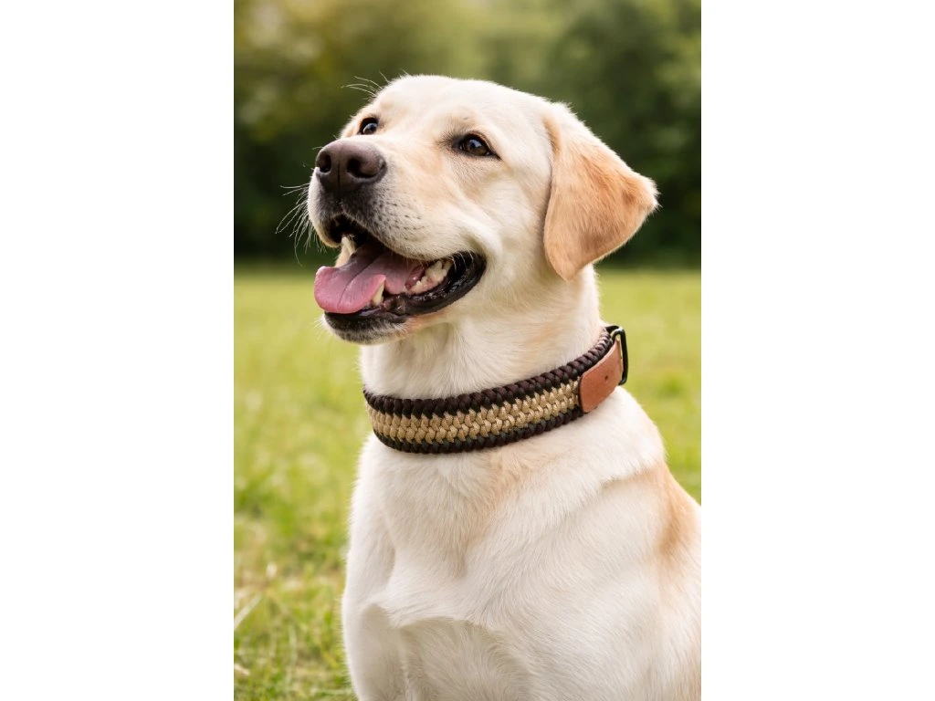 Fairy je výrazný a originální obojek pro psy, kteří si zaslouží být vidět. Ručně pletený z kvalitního paracordu v tónech hnědé zaujme svou originalitou a propracovaností.