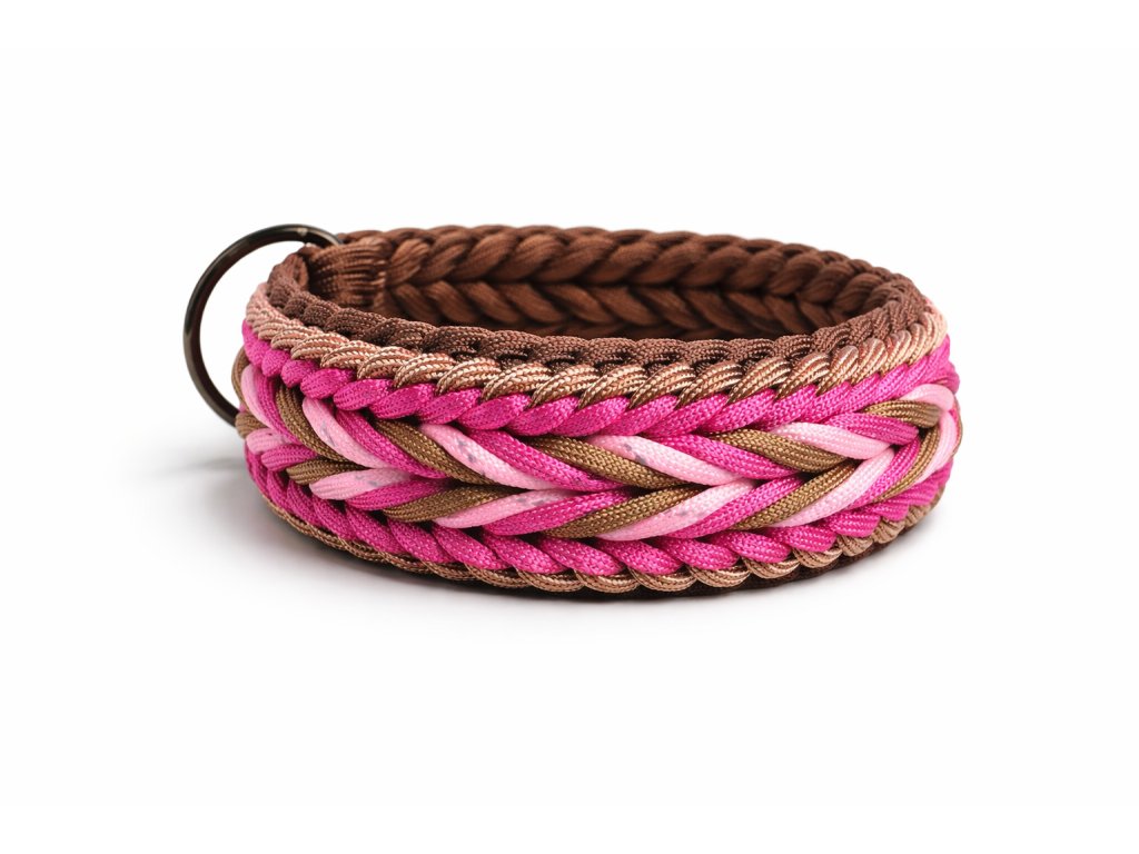 Obojek Růžový panter je ztělesněním ženské energie, elegance a sebevědomí. V kombinaci malinové růžové, jemné pastelové pink a metalické hnědé vznikl obojek, který nepřehlédnete.